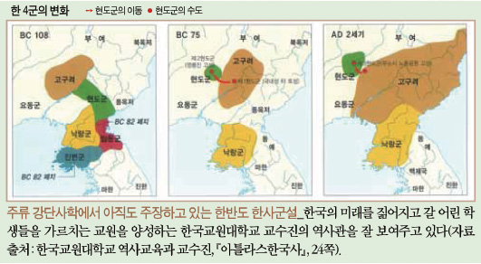 근래에 와서 고조선의 위치가 처음에 요동에 있다가 한반도로 이동했다는 설을 내놓기는 했으나 핵심은 바뀐 게 없다. 한사군은 여전히 대동강 유역에서 수백 년간 존재했다고 보기 때문이다.