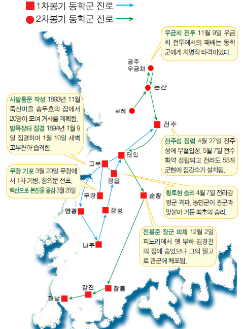 갑오년 1월 10일, 고부관아를 습격하고 무기고를 부수어 무기를 나누어 가졌다. 물론 일말의 불안감이 없지 않았다. 돌쇠 역시 대대로 농사를 짓는 양민이었다. 피땀 흘려 농사지은 곡식이 악랄한 지주나 탐관오리의 손아귀로만 들어간 것이 하루이틀이 아니었다. 이대로 힘들게 사느니 차라리 깨끗하게 죽는 것이 더 나을 성 싶었다. 황토현에서 승리를 거두고 연이어 관군을 격파하며 용기백배하였다. 가는 곳마다 탐관오리들을 쫓아내고 곡식을 풀어 사람들을 구휼해 주었다.
