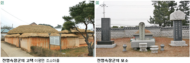 우리는 전명숙 장군의 고택과 묘소가 있는 이평면 조소마을을 찾아갔다. 말목장터에서 차로 10여분 달렸을까. 남도의 여러 마을처럼 평화로운 조소마을이 나타났다. 전봉준과 그의 가족은 고부농민봉기 몇 해 전에 이곳으로 이사하였다 한다. 이곳에서 전봉준은 농사일과 서당을 운영하며 가난한 선비의 삶을 살았다. 단출한 초가 두동을 돌아보며 몇 장의 사진을 남겼다. 옆집 촌로에게 물어보니 전 장군의 묘소가 근처에 있다고 친절히 알려 주었다. 답례로 책자를 선물로 주고 역사적인 현장에 온 기념으로 삼았다.