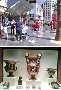 [사진: 게티빌라] 그 다음 방문지는 헐리우드에서 30분가량 이동하여 말리부 해안 언덕에 있는 게티빌라Getty Villa라는 박물관이었습니다. 게티빌라는 기원전 6500년부터 기원후 400년까지 4만 4000점의 그리스, 로마, 헬레니즘, 에트루리아 유물 등을 전시하는 전문 박물관으로 1974년 설립되었습니다. 이 박물관은 설립자 장 폴 게티(J. Paul Getty, 1892~1976)의 이름을 딴 두 박물관(게티센타, 게티빌라) 중의 하나입니다. 석유 재벌로 엄청난 자산가였던 게티는 전세계를 다니며 미술품, 골동품 등을 수집하여 게티빌라를 세우게 됩니다. 게티가 제일 아꼈다던 헤라클레스 조각상과 더불어 그리스신화에 등장하는 많은 신들의 조각상과 많은 유물들을 보면서 그리스 신화의 신들과 조우하는 것 같은 아찔한 즐거움을 느꼈습니다.
