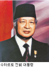수하르토 시대1968년 3월에 수하르토가 제2대 대통령에 정식 취임하여 신新질서 정부(New Order Government)가 출범했다. 수하르토는 경제개발과 정치적 안정을 최우선시 하는 정책에 기조를 두고 서방 진영의 일원으로서 국제사회 복귀를 추구하였고, 정치적 안정과 자신의 권력유지를 위해 정당시스템과 의회제도의 개편을 실시하여 이를 통해 장기집권의 토대를 구축하였다. 수하르토의 신질서New Order 체제하에서 권력은 수하르토에게 집중되었고 그 결과 인도네시아의 통일은 강화되고 경제발전도 이루었지만, 다양성의 추구는 통제되고 억제되었다. 1997년에 발생한 아시아통화위기를 계기로 수하르토의 개발독재체제는 붕괴의 위기에 직면하였다. 인도네시아의 경제는 루피아의 폭락과 물가폭등, 실업자 증대로 이어지는 침체와 혼란에 빠졌다. 1998년이 되자 학생과 노동자를 중심으로 경제재건, 부패척결을 요구하는 거리 시위가 일어났고, 5월에 군부대가 뜨리삭띠Trisaskti 대학 시위대에 발포하여 사상자가 발생한 사건을 계기로 자카르타에서 대규모 폭동이 반정부 시위로 확산되었다. 이 사태로 인해 총 6선에 걸쳐 32년간 장기 집권했던 수하르토 대통령은 몰락하게 되고 대통령직을 하비비Bacharuddin Jusuf Habibie 부통령에게 이양했다.
