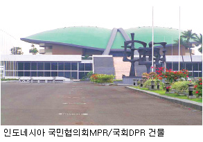 국민대표기관은 국민협의회(MPR : People’s Consultative Assembly)이며, 의회는 국회(DPR: The House of Representatives)와 지역대표협의회(DPD : Regional Representative Council)의 2원적 조직으로 이루어져 있다.