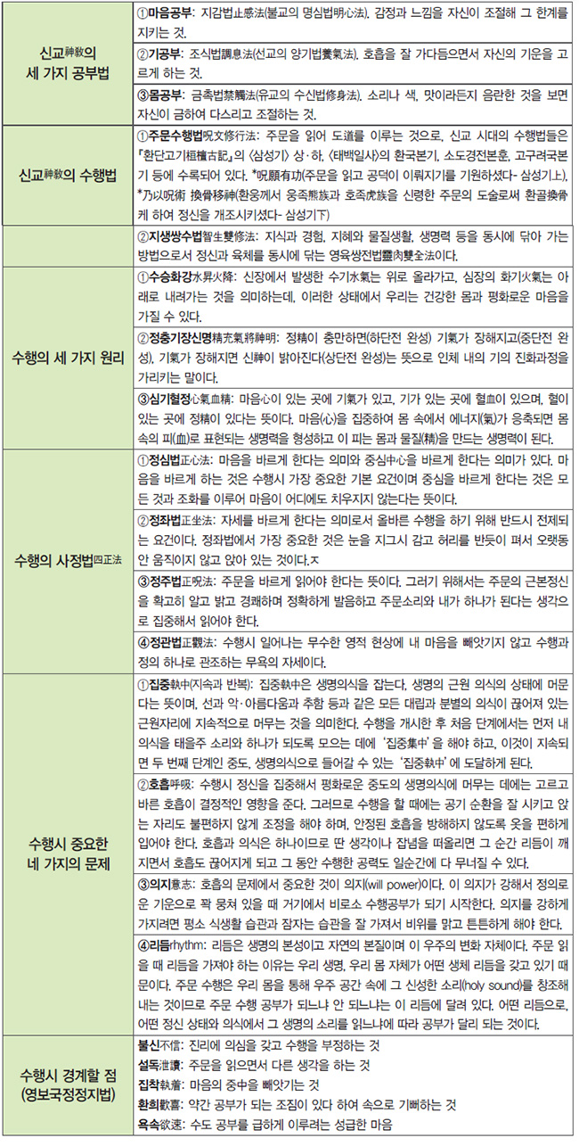 주문을 읽으면 어느 순간 마음이 무無의 상태가 되고 눈을 감고 있는데도 보랏빛이나 흰 둥근 빛이 보여 눈이 부실 때가 있습니다. 태을주는 마음뿐만 아니라 몸도 맑혀줍니다. 태을주 수행을 하면, 몸이 스스로 사기를 몸 밖으로 내보내 줍니다.