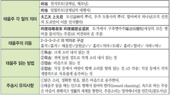 태을주가 어떤 주문인지, 태을주의 역사는 어떻게 이루어져 왔는지, 즉 태을주의 형성 과정을 제대로 알고 읽으면 누구도‘ 정말 태을주를 제대로 읽어야 되겠구나. 이 신령한 태을주 주문의 조화 속에 하늘과 땅과 인간과 신들의 삶과 죽음의 문제까지도 다 들어 있구나.’ 하는 것을 강렬하게 체험하게 된다.