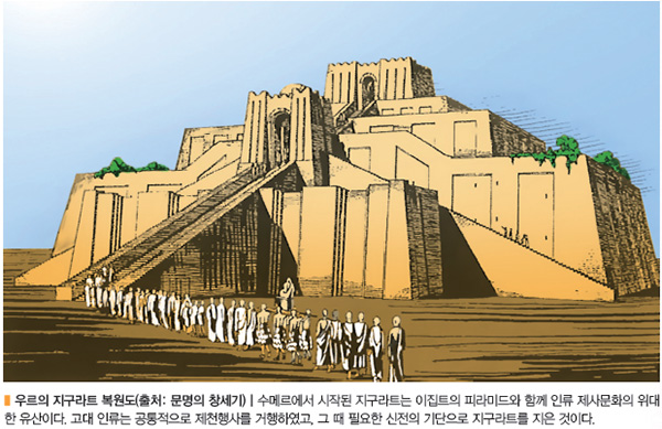 ▶천부경이 드러내는 우주 수학의 비밀에서 3과 7은 인간의 혼(soul)과 신(spirit)을 구성하는 천지의 생명원리로 파악됩니다. 당장 수메르 문명에 이 두 가지 숫자를 중시한 여러 흔적들이 나타납니다. 수메르 문명의 대표적인 유적 가운데 하나로 피라미드 문화의 원형으로 꼽히는 지구라트가 있습니다. 이는 이미 9천년 전부터 사람들이 하늘에, 하나님에게 제사를 지낸 천제天祭문화의 유산입니다.