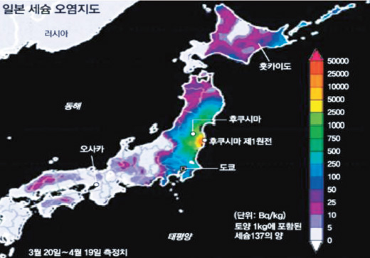 [그림] 여기 PNAS라고 전세계적으로 유명한 과학잡지 지도입니다. 일본 과학자들이 실은 논문에 의하면, 후쿠시마와 도쿄 사이 300키로 정도 되는 거리, 이만큼 고농도 오염이 돼버렸습니다. 일본땅 전체 20프로가 고농도 오염이 돼버렸어요. 그리고 일본땅 전체의 70% 정도가 방사능에 오염됩니다. 토양오염이 뭘 의미합니까? 일본에서 나는 농산물의 70%가 방사능에 오염된 겁니다. 조금 더 상징적으로 말하면 일본 사람들이 받는 밥상의 70%가 방사능에 오염된 겁니다. 게다가 오염된 밥상을 지난 2년 동안 받은 겁니다. 앞으로도 얼마 동안 더 받아야 되냐? 300년입니다. 여기 세슘*이라고 돼 있죠? 이건 반감기가 30년입니다. 30년 지나면 절반으로 줄어요. 이 반감기가 열 번은 지나야 대충 없어진다고 평가합니다. 일본 사람들은 앞으로 300년간 방사능에 오염된 음식을 먹어야 돼요. *세슘(Cesium, 원소기호Cs, 원자번호55, 반감기 약30년): 무른 은백색의 알칼리 금속으로 137세숨은 우라늄의 핵분열과정에서 생성되는 방사성물질이며 인체에 유입시 DNA손상을 일으킨다. 방사능에 피폭되면 세 가지 질병이 가장 많이 생깁니다. 첫 번째가 암. 두 번째 심장병. 세 번째가 유전병입니다. 앞으로 이 세 가지 질병이 발생하기 시작해요. 그리고 300년간 지속해요. 일본은 앞으로 어떻게 될까요? 굉장한 슬픔이 일본인 개개인들에게 찾아올 겁니다. 보통 피폭된 다음에 암발생은 10년 후부터 시작합니다. 그러나 심장병은 이미 시작했어요. 유전병은 찾기 어렵습니다. 훨씬 더 긴 시간을 통해서 나타날 겁니다. 저는 자신있게 말씀드리는데 일본의 국운은 한번의 핵사고로 꺾였다! 저는 그렇게 얘기합니다. 일본의 운명은 끝났습니다. 달라졌습니다.