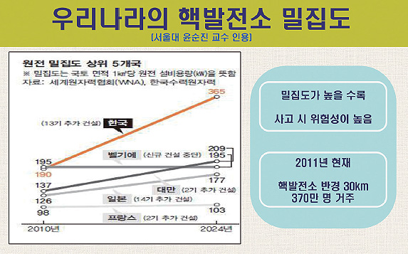 한국, 핵발전소 밀집도 1등