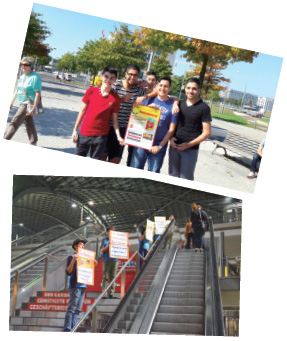 유럽의 중심에서 울려 퍼진 환단고기 북콘서트의 환호와 열기 뒤에는 이번 행사를 위해 자원봉사를 온 팀들의 헌신적인 활동이 있었다. 약 8천 킬로를 날아 온 한국의 자원봉사 팀들은 어려운 여건 속에서도 현지인들에게 언어의 장벽을 넘어, 온몸으로 진심을 담아 초대권을 전해주고 대학가와 시내 곳곳에 포스터 홍보를 하며 행사 당일 많은 분들이 참여하는데 가장 큰 역할을 해주셨다. 독일국회의사당Reichstagsgebäude에 집중 홍보를 하러 갔었고, 베를린 중앙역Berlin Hauptbahnhof에서 유럽 환단고기 북콘서트를 알리는 피켓을 들고 다니며 홍보를 하기도 했다. 곳곳에서 관심을 보이는 독일인들에게 초대권을 나누어 주었는데 반응이 아주 좋았다. 독일에 와서 그런 여러 가지 좋은 체험을 할 수 있어서 너무 감사했다.
