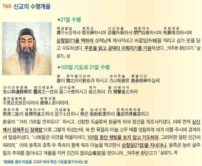 이에 큰 용기를 얻어 서원을 세우고 21일을 기약하여 생사를 걸고 더욱 분발하니 … 21일 공부를 마치던 날 천안(天眼)이 열리어 미륵불께서 수많은 도솔천의 백성들을 거느리고 대광명 속에서 오시는 모습을 보니라. (1:7:8~11)