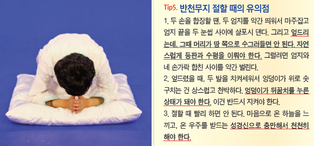 다시 말하면, 반천무지란 아버지 하늘을 받들고 어머니 땅을 어루만지는 형상의 절이다. 반천무지로 절하면서, “나의 생명의 어머니여!”하는 심정으로 엎드려 심고하라.