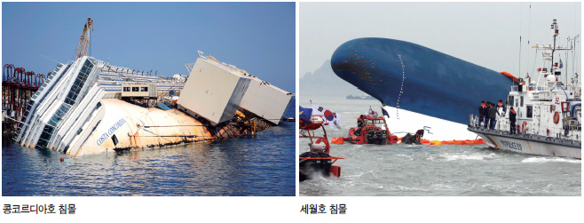 작년 한 해를 뜨겁게 달군 대표적인 사건으로는 세월호 침몰을 들 수 있다. 2014년 4월 15일 인천 연안여객터미널을 출발, 제주로 향하던 여객선 세월호가 4월 16일 전남 진도군 병풍도 앞 인근 해상에서 침몰해 수백 명의 사상자를 낸 대형 참사이다. 이 사고로 탑승객 476명 가운데 172명만이 구조됐고, 300명이 넘는 사망^실종자가 발생했다. 세월호 침몰을 둘러싼 원인으로는 무리한 화물적재와 증축, 진도 해상교통관제센터(VTS: Vessel Traffic Service)의 관제 허술과 골든타임 허비, 승객을 버리고 탈출한 선원들의 무책임한 행동, 정부의 허술한 재난대응체계 등으로 요약할 수 있다. 어른들의 잘못으로 인해 죽을 수밖에 없었던 수백 명의 꽃다운 청춘들을 향한 국민적인 슬픔과 애도는 반년이 지난 지금도 계속되고 있다. 세월호 침몰과 유사한 사건으로 2012년 1월 14일 호화유람선 코스타 콩코르디아호가 이탈리아 토스카나 제도 질리오섬에서 침몰한 사건을 들 수 있다. 승객과 선원 4,229명을 태우고 가던 중 암초에 부딪혀 침몰해 32명이 목숨을 잃은 사건으로, 60% 이상 사망한 세월호 사건과 비교하여 99% 이상 생존율을 기록한 침몰 사고였다. 당시 콩코르디아 선장 프란체스코 세티노도 승객을 버리고 도주했지만 선원들의 침착한 안내와 관계기관의 협조로 세월호와는 전혀 다른 결과를 낼 수 있었다.