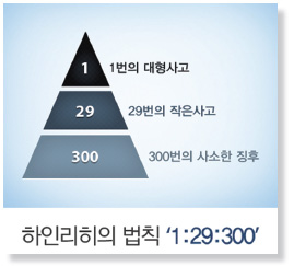 하인리히의 법칙 (300번의 신호, 29번의 경고, 1번의 재해)