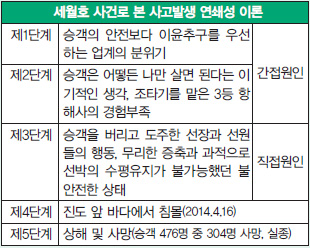 최근 통계청에서 13세 이상 3만 7천 명을 대상으로 사회불안 요인을 조사했다. 그 결과 우리 국민의 절반은 사회가 안전하지 않다고 느끼는 것으로 나타났다. 특히 세월호 참사의 충격 때문인지 2014년 우리 사회의 안전을 위협하는 가장 큰 불안 요인은 ‘인재人災’라고 생각하는 비율이 21%로 가장 많았는데 이는 2012년(7%)보다 3배 증가한 수치다. 과거 조사에서는 범죄가 가장 큰 불안 요인이었는데 이번에 처음으로 인재가 범죄를 앞선 것이다. ‘우리 사회가 불안하다’고 느끼는 비율이 2012년 37.3%에서 올해 50.1%로 크게 늘었고, 안전하다고 답한 비율은 9.5%에 불과했다. 국가에서도 이를 의식한 듯 ‘국민안전처’를 신설新設하여 국민의 생명과 재산을 지키기 위해 노력하고 있다. 하지만 여전히 국민들의 우려는 가시지 않고 있다. 실제로 5년 뒤 우리 사회가 안전해질 거라고 보는 국민은 다섯 명 중 한 명에 불과했다.