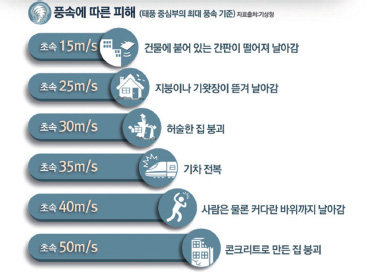 허창회 서울대 지구환경과학부 교수는 “올 여름 한반도에 강한 태풍 1~2개가 직접적인 영향을 미칠 영향이 크다.”고 밝혔다. ‘강한 태풍’은 중심 최대 풍속이 초속 50m 이상인 태풍을 뜻한다. 초속 40m 이상 강풍은 사람은 물론 바위까지 날려버릴 수 있는 위력을 갖고 있다. 2012년 우리나라를 강타했던 ‘볼라벤’이 가장 강력했을 때의 중심 최대 풍속이 초속 53m였다. 태풍에 대한 정보는 ‘국가태풍센터’에서 제공된다. 태풍과 호우시 행동요령을 알아보자.