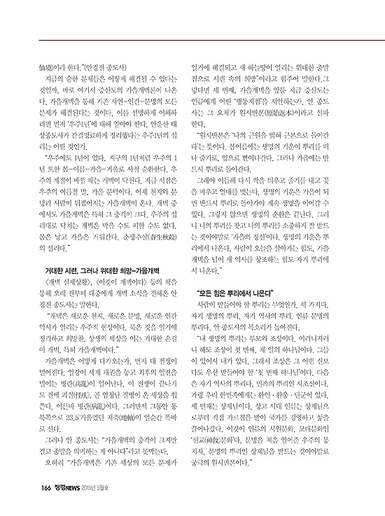 “상극의 오늘 넘어 상생의 내일이 온다” (정경NEWS 2015년 5월호, 162면)
