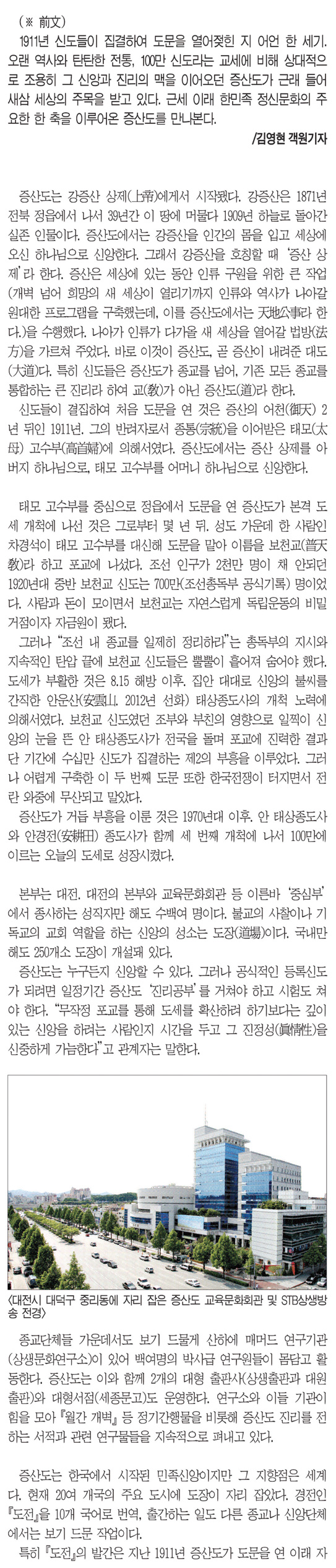 민족정교 증산도의 비전(월간 정경NEWS / 법률선진신문 기사)