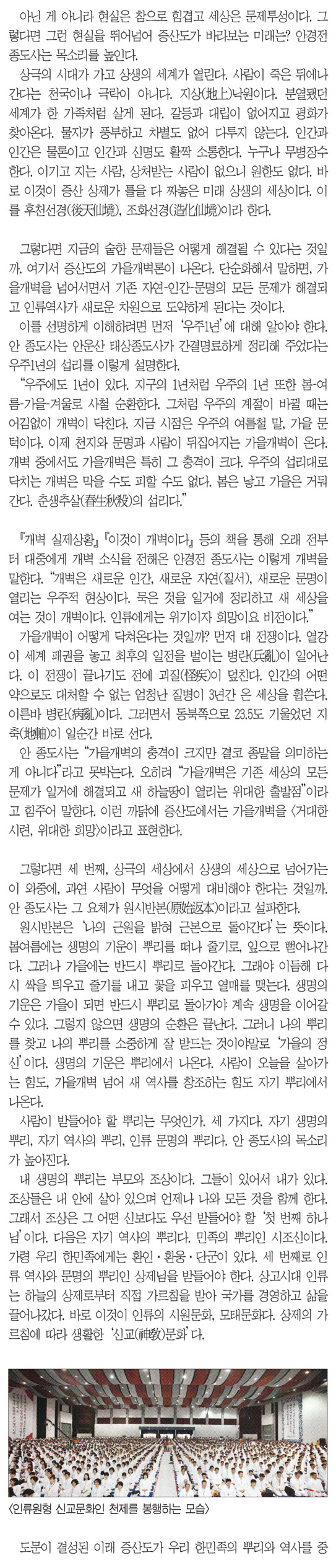 「相生」선언 100년, 증산도의 비전