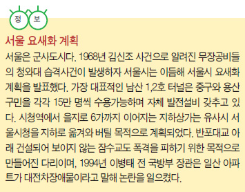 대피소 : 대피시설은 방호도에 따라 1~4등급으로 나뉜다. 3~4등급은 ‘우리 집 지하실’ 수준이고 핵전쟁에 유효한 1등급 대피시설은 전국에 총 15개소, 수용인원은 1만 2,000명에 불과하다. 국민의 0.02%만 핵 안전지대에 거주하는 것인데, 이것도 군 시설을 제외하면 서울에 1등급 대피시설은 서울시 신청사 한 곳뿐이다. 신청사는 비상시 행정업무와 지휘통제를 위해 만들어져 실제 상황에서 민간인은 사용할 수 없다.