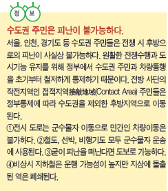 ㆍ가급적 외출하지 않고 민방위 방송 등을 통해 정부 안내에 따른다.