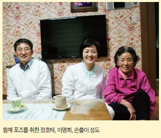 또 한 가지 소개해야 할 사연이 있다. 이번 도방 취재를 시작한 첫 장소, 두 부부의 사업장에 들어갔을 때 한쪽에 앉아서 태을주를 계속 외우고 있던 할머니 성도님 한 분을 발견할 수 있었는데, 그분이 바로 이명희 성도의 어머니 손출이 성도(75세)였다. 그런데 이분은 지금 치매라 불리는 알츠하이머alzheimer 병을 앓고 있는 환자다. 6년 전 알츠하이머 진단 시 이미 병의 진행이 중기를 넘어선 상태였다. 이 성도는 1년 전부터 어머니를 집에 모셔와서 늘 함께 지내며 돌보고 있다. 알츠하이머는 퇴행성 뇌질환이라서 기억력을 포함한 인지력의 악화가 시간 경과와 함께 진행되는데, 손 성도의 경우 병원에서는 다른 동일 환자의 경우와 많이 다르며 진행 속도가 상당히 느리다는 소견을 내놓았다고 한다. 무엇이 달랐던 것일까. 그 이유에 대해 이명희 성도는 어머니가 태을주와 도공을 곧잘 같이 하시는 것을 들었다. 인지력에 다소의 장애가 있기는 하지만 시간 경과에 비해 병세의 악화가 많이 지연되고 있는 것은 태을주와 도공까지 열심히 하시는 그 의지와 정성 때문이라는 것이다. 취재 시점부터 목격한 모습으로 미루어 짐작해 보면 충분히 수긍이 가는 말이었다. 자택 인터뷰 진행 도중 이 성도 옆에 앉아 함께 사진을 찍자고 말씀드렸더니 싱긋이 웃으면서 포즈를 취하기도 하셨다. 태을주의 조화로 더 나아지시기를 기원한다.