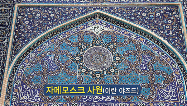 여기는 이란인데, 이란은 궁궐이나 사원이나 전통 시장에 이런 원방각 문양이 가득합니다. 이 주변에 팔방위, 또는 열두 개 문양도 있는데 지구촌에는 보통 16수가 가장 많아요. 팔음팔양이라는 우주 원 십자의 실제적인 음양 창조운동을 현상적으로는 그렇게 표현하거든요.