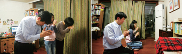 겨울비가 오락가락하던 12월 둘째 주 목요일 저녁 시간, 두 성도가 살고 있는 대구시 달서구 상인동의 아파트를 방문했다. 장기임대로 분양받아 입주한 아파트 내부는 이 부부 성도의 담백한 신앙만큼이나 아주 깔끔하고 편안했다. 안으로 들어서자 바로 왼쪽 벽에는 태을주 액자가 세로로 걸려 있고 정면 끝에 보이는 작은 책장과 오른쪽 거실 공간에 조성된 도방 신단 역시 형식은 단순하지만 속이 채워진 느낌을 주었다. 그저 신앙을 오래 한 것밖에는 말할 게 없다고 난감해하던 부부의 도방을 방문했으니 무엇을 묻고 듣느냐 하는 고민이 없지 않았는데, 결과적으로 보면 있는 그대로의 신앙역사를 돌아보는 것이 이번 기사의 자연스러운 취재원 역할을 하게 되었다.