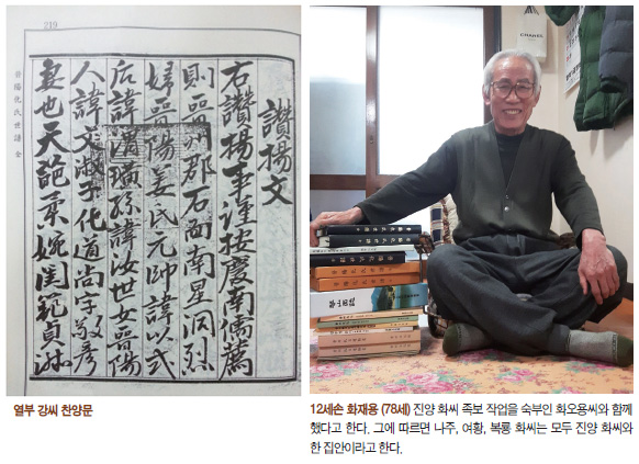 10세 화창도化昌道의 부인 진양晋陽 강씨姜氏는 남편이 질병으로 쓰러지자 단지斷指수혈로 목숨을 건지게 했다. 보리 흉년에 아사자가 속출하는 등 참상에 첩첩산중을 헤매며 영약초를 구해다 달여 먹이는 등 남편의 병구완에 30여 년간 극진한 정성을 바쳐 ‘삼강행실록三綱行實錄’에 기록됐고 ‘열부찬양문烈婦讚楊文’이 가보로 전해지고 있다.