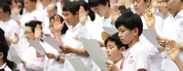 하나, 천하사 신앙 동지들과 결의동맹을 하고 생사고락을 함께하여 영원히 변치 않는 신앙을 하겠습니다.