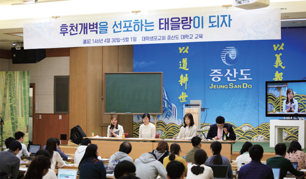 태모님의 성탄대치성을 앞둔 4월 30일부터 5월 1일까지, 증산도교육문화회관 상생관에서는 5월 대학생포교회(이하 대포) 증산도대학교(이하 증대) 교육이 진행되었다.