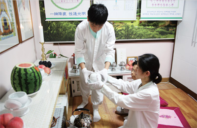 올해 71세가 되신 심 도생의 어머니 전연옥 도생은 몸이 많이 쇠약해져서 한동안 요양차 병원에 계시다 연초에 퇴원을 했다. 그 후 작정을 하고 2월부터 하루도 빼지 않고서 목욕재계와 105배례 주송 및 도공을 하며 정성수행을 하고 계신데 요즘은 기력을 회복하면서 몰라보게 건강이 좋아졌다. 평소 진리를 잘 이해하고 믿음에 확신을 갖고 있었던 전 도생은 자신의 의지와 정성으로 건강을 회복한 것이다.