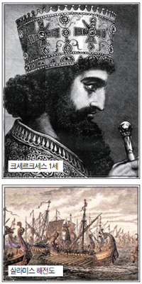 아테네와의 전쟁에서 패한 다레이오스 왕은 그리스를 다시 완전히 정복할 계획을 세웠으나 실현을 못하고 죽는다. 그러자 아들 크세르크세스Xerxes(BCE 519~465)는 그 과업을 받들어 기원전 480년에 엄청난 대군을 이끌고 2차 그리스 본토를 침공하여 파죽지세로 초토화하기 시작했다. 남은 지역이라고는 코린토스에 집결한 그리스 연합 지상군과 구국의 일념으로 결성된 살라미스Salamis 해협의 연합군 함대뿐이었다. 이러한 위급상황은 우리의 조상들이 치룬 임진왜란을 연상시킨다. 그런데 풍전등화의 위기에 처한 그리스에서 기적이 일어났다. 마치 임진왜란 때 이순신 장군이 이끄는 12척의 배로 수백 척의 왜군을 격파했듯이, 그리스의 장군 테미스토클레스Themistokles가 이끄는 해군은 페르시아 함대들을 아테네의 앞바다 살라미스 해협으로 유인한 후 급습하여 격파한다. 살라미스 해전을 승리로 이끈 그리스는 이후 해상권을 독점하게 됐고, 델로스Delos 동맹의 맹주로 떠올라 다른 도시국가를 속국처럼 다루게 된다.