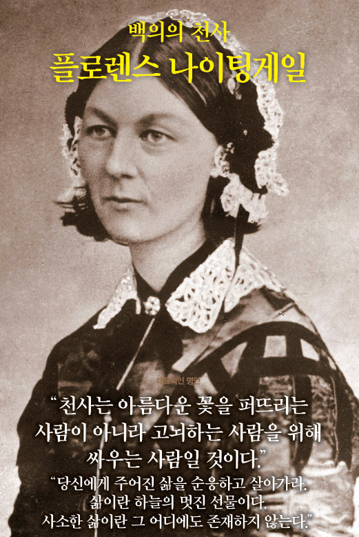 영국의 간호사, 병원ㆍ의료제도의 개혁자. 러시아 제국과 벌인 크림전쟁Crimean War 중 터키 이스탄불에서 야전병원장으로 활약하였으며, 간호사 직제의 확립과 의료 보급의 집중 관리, 오수 처리 등으로 의료 효율을 일신하여 ‘광명의 천사’로 불렸다.