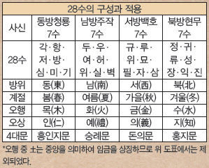 하늘의 28개의 별자리를 땅에 적용한 내용