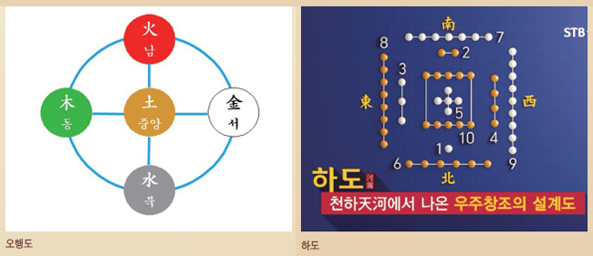 다섯 신비로운 동물, 오신五神 이야기는 고구려 벽화 사신도로 너무나 유명합니다. 향로의 거북은 현무, 새는 주작 혹은 봉황이 아닐까요? 오신 이야기는 배달국 그 이전부터 전해져 온 우리 민족의 문화 양식입니다. 그러면 왜 거북이가 아래에 있고 새가 위에 있을까요? 너무도 황당한 의문일 수 있습니다. 하지만 이것이 향로의 거북이와 새의 구도를 이해하는 힌트일 수도 있습니다. 백제의 금동 대향로도 물을 상징하는 용을 아래에 배치하고 불을 상징하는 봉황을 향로 위에 배치했습니다. 이것은 음양 오행 사상의 대표적인 도상인 하도河圖로부터 유래됩니다. 하도와 같이 고래로부터 북방을 아래쪽에 배치하고 남방을 위쪽에 배치했습니다. 그러므로 거북(현무)은 아래에 두고 새(주작, 봉황)는 거북의 위에 놓이게 됩니다.