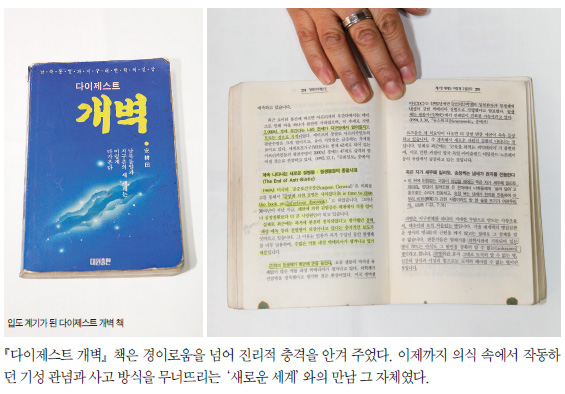 “책을 읽고 가장 놀란 것은 지구 1년처럼 우주에도 1년이 있으며, 우주의 사계절은 지구 지축의 기울기가 변화함에 따라 지구의 1년 일수가 각각 다르다는 것이었습니다. 1년은 365와 4분의 1일이라는 고정 관념이 깨지는 순간이었고 동시에 제가 두꺼운 껍질을 깨고 새롭게 태어나는 느낌이 들었습었다. 『다이제스트 개벽』을 읽고 엄청난 충격을 받은 저는 관련 책을 사서 다 읽고 난 후에 상제님 진리에 대해 확신을 갖게 되었습니다.”