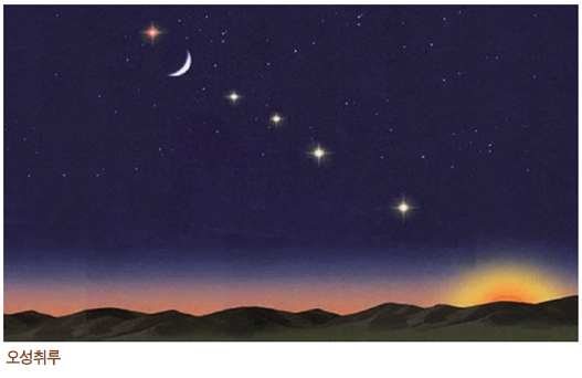 “환단고기의 ‘무진오십년오성취루戊辰五十年五星聚婁’ 기록이다. 여기서 ‘무진오십년’은 BC 1733년을 말하고 ‘오성’은 물론 수성·금성·화성·목성·토성을 말한다. ‘취’는 모인다는 뜻이고 ‘루(婁星)’는 동양 별자리 28수의 하나다. 즉 이 문장은 ‘BC 1733년 오성이 루 주위에 모였다’ 같이 해석된다. 이 기록을 처음으로 검증해 본 천문학자는 라대일 박사와 박창범 박사다. 그 검증 결과는 논문으로 작성돼 1993년에 발행된 한국천문학회지에 실렸다. 나는 큰일을 해낸 두 후배 천문학자가 너무 자랑스럽다.” (『개천혁명』 13~14쪽)