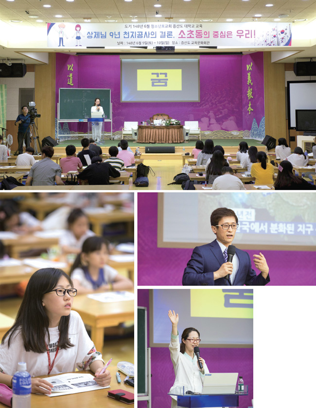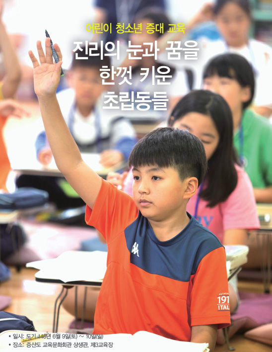 6월 어린이포교회(이하 ‘어포’) 증산도대학교(이하 ‘증대’) 교육이 9일부터 10일까지 1박 2일 일정으로 태전 증산도 교육문화회관에서 진행되었다. 이번 6월 증대의 주제는 ‹우주관›으로, 초립동들이 우주관을 보다 쉽게 이해할 수 있도록 양일간에 걸쳐 영화 감상, 성구 암송, 학년별 교육 등 다채로운 프로그램들로 구성되었다.