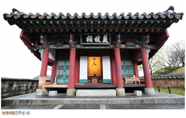 당시 사람들에게 진주성은 문자 그대로 천험의 요새였다. 진주성 남쪽은 험준한 절벽 아래 남강이 흐른다. 이는 천연 해자垓子로 공격이 거의 불가능하다. 성 북쪽 또한 세 군데의 연못으로 형성된 깊은 늪이 성벽 아래에 가로놓여 있어 공성이 쉽지 않은 곳이었다. 진주성 북쪽에 가로놓인 이 못을 통칭하여 대사지大寺池라 했다. 서쪽은 촉석이란 말 그대로 산세가 있고 험준하다. 성안에는 사시사철 마르지 않는 우물과 샘이 각각 세 곳 있었고, 남강의 풍부한 수량을 얼마든지 이용할 수 있으니, 식량과 충분한 화살만 있으면 몇 년이고 버틸 수 있는 곳이다.