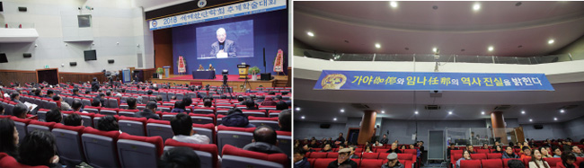 겨울 바람이 매서워지는 대설의 절기였던 12월 7일, 세계환단학회 추계 학술대회가 한반도의 남쪽, 부산에서 열렸다. 다소 늦은 감이 있는 추계 학술대회였지만 이번 학술대회에 대한 관심은 이미 시작 전부터 뜨거웠다. 그것은 매번 놀라운 역사의 진실을 드러내어 깨달음의 충격을 주시는 종도사님 초청 특강에 대한 높은 기대감 때문이었다. 학술대회 당일 비가 간간이 섞인 추운 날씨 속에서도 부경대 대학극장의 1, 2층에는 참여자로 꽉 들어차, 많은 분들의 기대감을 몸소 실감할 수 있었다.