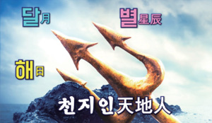 우주의 조물주 하느님을 삼신이라 하는데 ‘일즉삼一卽三 삼즉일三卽一’이라는 원리에 따라 한 하느님이 조화신, 교화신, 치화신이라는 세 모습으로 작용하면서 자신을 드러내시기 때문이다. 삼지창과 일자 여의봉에서 삼신 코드를 읽을 수 있다.