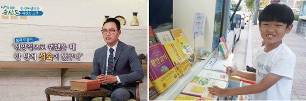 A 예전에 봉사활동을 하면서 푸드트럭을 구입했던 적이 있었는데요. 새벽수행을 하다가 ‘푸드트럭을 개조해서 도서관을 만들면 내게 맞는 포교방법을 만들 수 있겠다’란 생각이 들었습니다. 그래서 푸드트럭에 ‘상생도서관’ 시트지를 씌웠는데 그 다음이 문제였습니다. 신앙을 10년 정도 건성으로 하다보니 어떤 책을 사람들에게 소개해야 되고 어떻게 책을 배치해야 좋은지 도저히 정리가 안되었습니다. 그래서 포정님과 상담을 통해 책을 선정하고, 비닐커버를 씌우고 스티커작업을 할 수 있었습니다. 포정님과 도장 성도님들의 도움을 받아 무사히 도서관 문을 열 수 있었습니다.