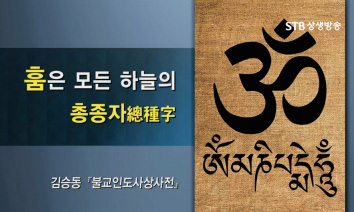 바로 종자언어, 씨앗언어로 구성돼 있습니다. 이걸 ‘비자 만트라bija mantra’라 하는데, 대표적으로 티벳트 불교에서 읽는 ‘옴마니반메훔’이 있어요. ‘훔’이 나오는데 “‘훔’은 모든 하늘의 종자(아, 하, 우, 마)가 모여서 된 것(총종자總種字)이다”라고 『불교 인도사상사전』(김승동 편저)에 정의돼 있습니다. 팔만대장경에 담긴 불교 깨달음의 모든 진액을 한 글자로 ‘훔’이라 한 거예요. ‘훔’자는 법신法身, 보신報身, 응신應身, 화신化身을 모두 갖추고 있습니다. (쿠카이空海, 『훔자의』)