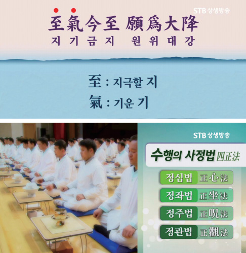 정공靜功 수행법은 앉아서 허리를 반듯하게 펴고 눈을 지그시 감고, 생각을 끊고 주문 자체가 돼서 읽는 것입니다. 자연스럽게 하단전으로 호흡을 하면서 읽어야 그 소리에 따라 우주 기운이 그대로 몸으로 들어옵니다.