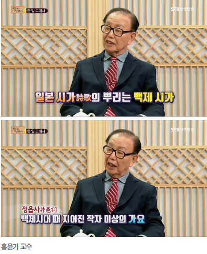 A 홍윤기 교수: 1980년대에 일본에 들어가서 일본의 시가詩歌를 연구하다 보니까 일본 시가의 뿌리가 한반도에 있었습니다. 왕인에 의한 백제의 시가가 일본 시가의 뿌리가 되었습니다. 현재 백제 가요 3편이 전하고 있는데요 그 중에 정읍사井邑詞(백제시대 때 지어진 작자미상의 가요)에 보면 일본과 같은 율조律調의 시가가 나오게 됩니다. 일본 시가의 뿌리가 한반도로부터 건너간 것이기에 일본 고대사를 공부하면 더 많은 내용을 알 수 있을 것이란 생각에 고대사를 연구하게 되었습니다.
