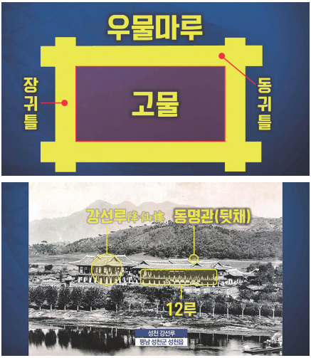 평안도 성천成川에 있는 강선루降仙樓는 어떤 누각인가? 허미수許眉叟(1595~1682)라는 사람이 선도仙道 계열인데, 신선들을 모시고 선도를 연다고 누각을 세웠다. 고물이라는 것은 누각 바닥에 깔아놓은 판, 마루판이다. 그게 1만2천 개나 되었으니까 동명관東明館 앞에 있던 강선루는 아주 큰 누각이었다. 그런데 그 고물에 녹줄이 붙어 있다.