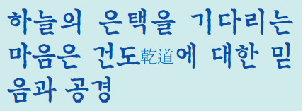 과연 하늘의 은택은 무엇이며, 그 은택을 기다리는 지혜는 무엇인가? 이에 대해서 살펴보고자 한다.