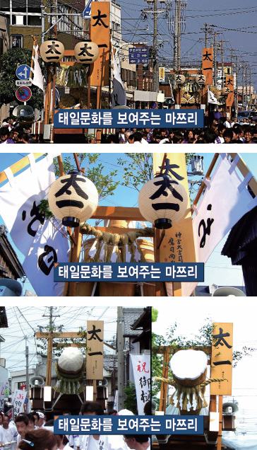 지금도 일본에서는 마쯔리祭り라는 큰 축제에서 국조신과 태일을 모시고 있습니다. 그들은 이 문화의 근원을 모르고 태일 뜻도 잘 몰라요. 이 태일은 ‘크게 하나 됨’입니다. 태일은 환국과 배달과 조선의 창업조 되시는 환인, 환웅, 단군 그분들의 본래 법명입니다. 하늘과 땅과 인간을 하나 되게 하는 한마음으로 사는, 우주와 한 생명, 한 몸이 돼서 사는 우주 광명 인간, 바로 전인佺人이 된 사람이 태일이에요. 일본인들은 태일의 참뜻을 알든 모르든, 태일 마쯔리 축제를 통해서 앞으로 올 가을개벽의 새로운 인간상, 그것을 매년 노래하고 외치는 것입니다.