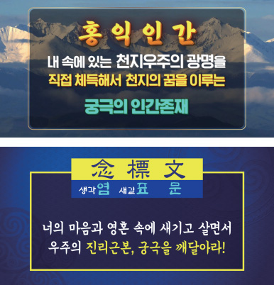 아울러 태고 창세문명의 우주광명 정신과 아버지 하느님의 뜻을 지상에 실현하는 개천開天의 역사정신을 오늘에 되살려, 21세기 지구촌 인류 문명의 병폐를 치유하고 온 인류가 한마음으로 하나되는 대한역사광복의 참뜻을 총체적으로 정리하였습니다.