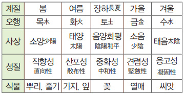 ★ 봄을 소음少陰, 가을을 소양少陽으로 볼 수도 있다.