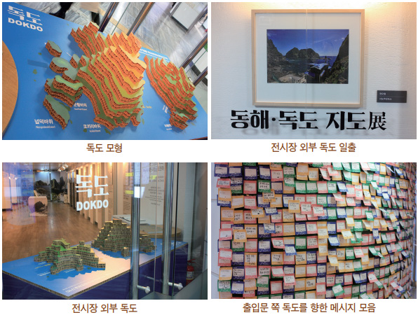 그래서 전시장 규모는 작지만 알차다고 할 수 있다. 전시장 출구 쪽에는 독도 모형이 전시되어 있으며, 독도의 유래와 우산도라는 역사적 지명에 대한 이야기와 거기에 숨겨진 이야기, 독도의 지리에 대한 친절한 설명도 들어 볼 수 있다.